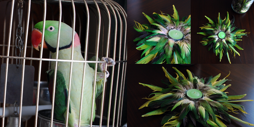 Annemin papağanı Rokko’nun tüylerinden mumluk