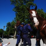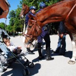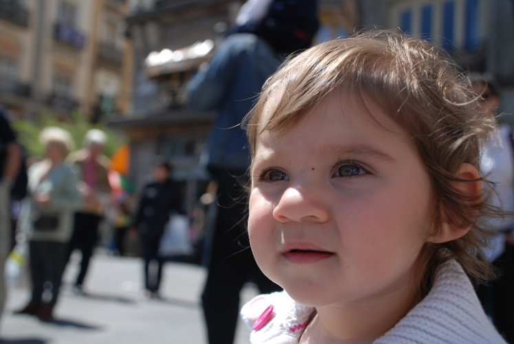 Parkın merkezinde yer alan anıtı belki Turist Ömer Boğa Güreşçisi filminden hatırlayabilirsiniz, bize öyle oldu da :D - Mira’nın Rocky Balboa edasıyla bu anıtın merdivenlerine yaklaşması, tırmanması ve tırmanışı tamamladıktan sonra çingeneler tarafından gelen alkışları kabulü pek komikti… Havuzun çevresinde yürümeye devam ederken Mira’cım, bu sefer de yanımızdan geçen devasa polis atlarının peşine takıldı… Çıkışa yaklaşırken, atları yakaladık. Mira 2 metreden uzun bu atlardan hiç korkmadı ama sanırım biz biraz tedirgin olduk. Ne de olsa, 1.90 olmasına rağmen Cenk bile küçücük kalıyordu yanlarında… Pusetinden indirmeden uzaktan bak dedik… Ama Mira atlara mırıl mırıl o kadar çok konuştu ki sonunda atlardan birisi eğilip bizim kızın elini öptü :) Zorla ayırdık atlardan… Madrid’in İstiklal caddesi olarak adlandırabileceğimiz Puerta del Sol’e geçtik. Burada fazla oyalanmadan birlikte çalıştığım hocalar ile buluştuk. Hafif bir akşam yemeği ardından otelimize döndük.
