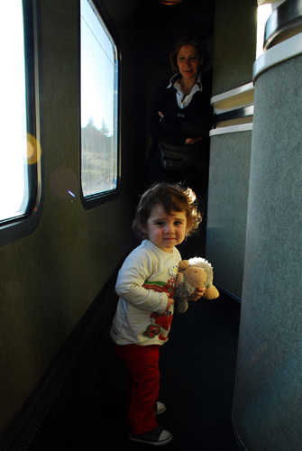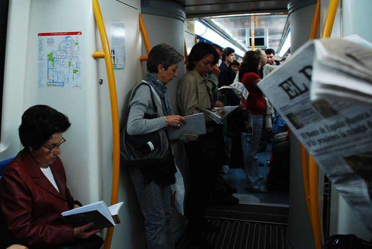 Planımıza göre Lisbon’dan Madrid’e yataklı tren ile geçecektik… Böylece ben Evora ve Madrid’teki çalışma saatlerimi kaybetmemiş olacaktım. Hem de uçaktan daha uygun bir ücrete seyahat edecek ve bir gece daha az otel parası verecektik. Evora’dan Lisbon’a da banliyö treni ile geçip, istasyon değiştirmeden bizi Madrid’e götürecek yataklı trende yerimizi alacaktık… Kusursuz plan ama bir yere kadar tabi ki… Yataklı tren biletlerimizi son günlere bırakmamak için Türkiye’deyken İspanyol Demiryolları - Renfe‘nin web sitesinden aldım. Ancak bilet alma işlemini gecenin bir yarısı yapınca işe şeytan karıştı… parasını ödedim ama biletleri basamadım. Türkiye’den Renfe’yi aradığımda çok yardımcı olmalarına rağmen aynı yardımı Portekizlilerden almayınca gereksiz yere uğraştık. Trene binene kadar çok gerildim. Neyse eşyalarımızı trene yerleştirdik, kalkış saati olan 22:30′a kadar peronda oyalandık. Trenin hareketi ile Mira’cım ile koyun koyuna yatağımıza yerleştik. Burun buruna uyuduk. Üst katta yatmak durumunda olan babayı pek bir kıskandırdık. Sabah 7:30 gibi koklaşa koklaşa kalktık. Restaurant vagonunda kahvaltımızı ettik. Sabah 9:00′da Madrid’teydik.