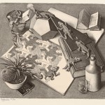 Escher sonsuzluğu 2 boyutlu bir kağıtta tasvir etmiş, paradoks, metamorfoz gibi soyut gelen kavramları somutlaştırmıştır. Birbirini çizen eller, içi dışa dönüşen yüzeyler, hep çıkan merdivenler, nesnenin zaman içinde alacağı tüm haller… çizgilerinde göze çarpar…