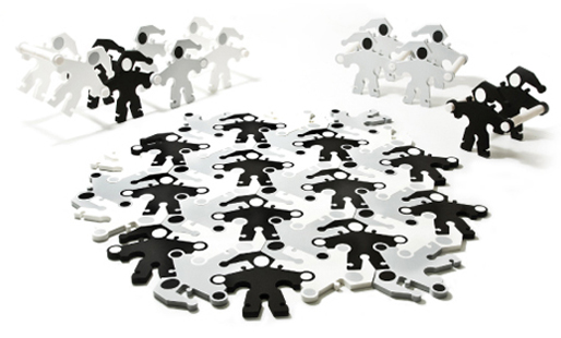 Kore’li IWASHIN firmasından iki tasarımcı Shin Jang Hyun ve Lee Bo-Kyung de, Escher’in metamorfozlarından ilham alarak, Tessell isimli bir yer matı tasarlamışlar. Geçen sene gördüğümde gözlerim ışıldamıştı. Rengarenk bir yer matı, aynı zamanda çocukların birleştirmeleri için bir puzzle ve üzerine binebilecekleri bir oyuncak… Bence çocuklarda yaratıcılığı, şekil uzay becerilerini geliştirmek için muhteşem bir fikir… Geçenlerde de “tabure ve masaya dönüşen çiçekler” ve “dominolara dönüşen elfler” ile Tessell in the Forest serisini gördüm. Bir kez daha bayıldım.