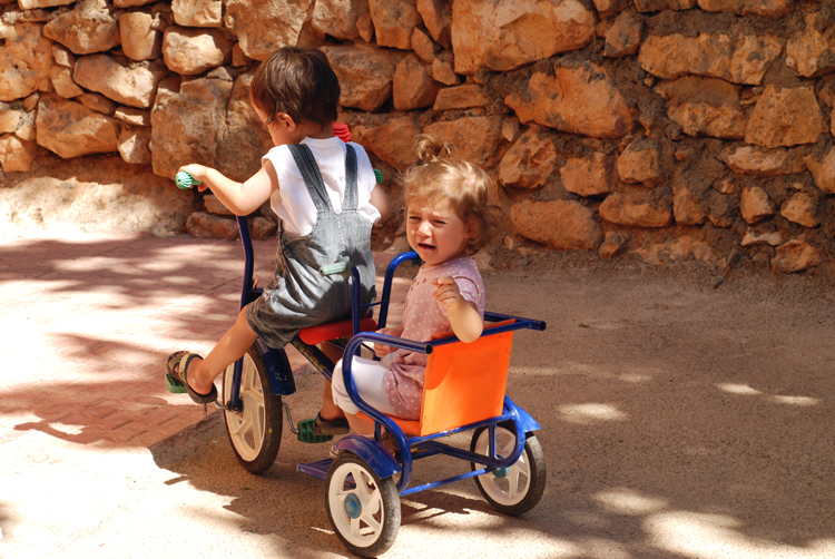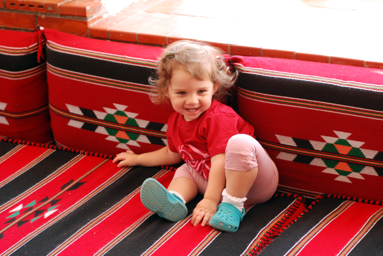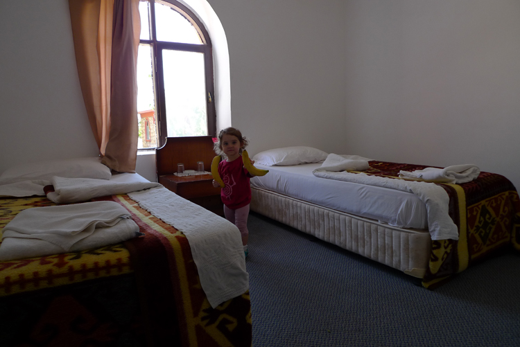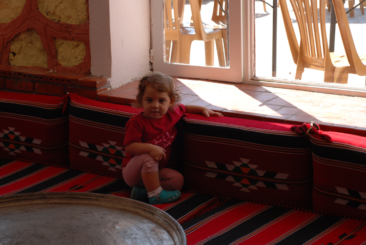 Mira kahvenin yanındaki tezgahtan bir abisi (!) Antiochos’un, bir de onun koruyucu kartalının heykelini kaptı böylece döndük otele… Akşam yemeğinde portatif mama sandalyesinin sayesinde bizimle birlikte oturdu sofraya… “Bütün gün kuru kuru şeyler yedi, bari bir sıcak çorba içsin” diye ben elime kaşığı aldım ama o bir lokma almadı. Onun yerine on parmak girdi önüne konulan güvecin içine… önce etleri, sonra fasülyeleri, sonra patatesleri, patlıcanları… yedi sıra ile… Çoban salata içerisinden domatesleri seçip tek tek yedi. Arada yağlı elleri ile kafasını mıncıklamayı da ihmal etmedi