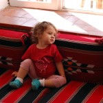 Çıkmadan… Küçük bir sırt çantası için hayal kurdum… hatta çok inat ettim. gerçekten minimum sayıda kıyafet aldım. Ama Mira için az oyuncak, kitap, bolca atıştırmalık (kuru meyve, beypazarı kurusu vs.), ateş ölçer, ateş düşürücü, diş jeli, şampuan, sabun, portatif lazımlık, portatif mama sandalyesi derken çanta oldu yine bavul… ne zaman küçülecek merakla bekliyorum. Çantayı Mira ile birlikte hazırladık. Kıyafetlerini kendi seçti. Biraz yavaş oldu hatta çok çok yavaş oldu ama en azından Mira gereksiz heyecanlanmadı. ilk defa akşam vakitlice uyudu, iyi oldu…