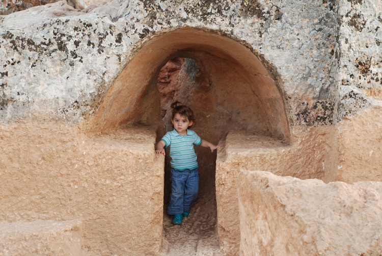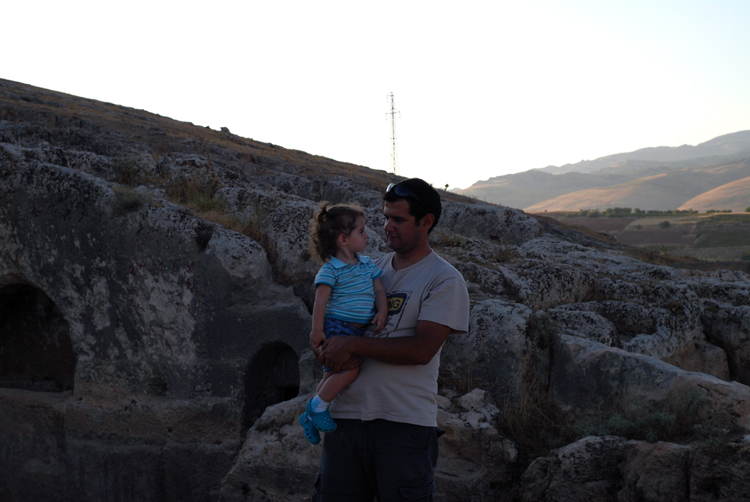 Öğlene doğru Karadut’tan ayrıldık. Adıyaman merkezdeki Bozdoğan Oteli‘ne yerleştik. Şehirde yemek yedik. Ekibin kalanının da gelmesi ile Pirin köyünde bulunan Perre Kaya Mezarları‘na doğru yola çıktık. Oraya vardığımızda Mira, şöförümüz Savaş ve amcası Canberk refakatinde, minibüste uykusunu uyudu… Uyandığında alanı dolaştık. Mira deliklere girdi çıktı. Canberk ile saklambaç oynadı… Arkeolog hocalarımız şimdiden kazı alanı tozu yutmasının ileride arkeolog olması kararını etkilemesi kadar, bağışıklık sistemini de güçlendireceğini söylediler