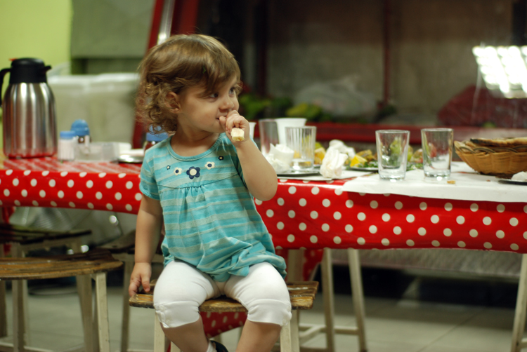 Akşam üstü otelde kaldık… Ama akşam son gecemizin hatırına kendimizi Adıyaman sokaklarına attık. Önce Kebapçı Beko’da yemek yedik. Küçük tabureler ile döşenmiş dükkanda biz Gulliver cüceler ülkesinde gibi hissetsek de, Mira görünce boyu boyuna uygun diye pek sevindi. Taburede düşmeden oturup kebapları götürdü. Hatta arada kalkıp, arka masadaki yemeğini yerken nazlanan ablaya bile yedirmeye kalktı