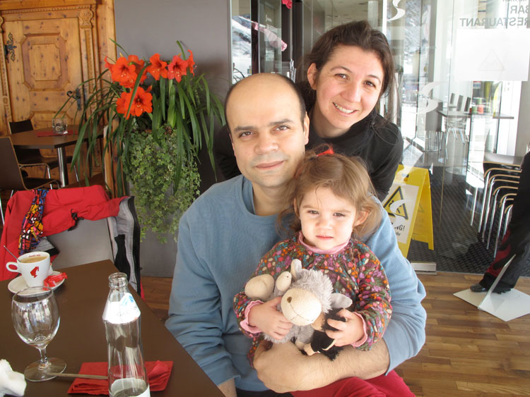 Sabah 4′te evden çıkarak başladığımız, Ankara-Munih-Zürih uçuşunu takiben 2,5 saat araba kullanarak yaptığımız yolculuğun büyük kısmını Mira uyuyarak tamamladı. Mira uyanık kaldığı her an ise göz hapsi prensibimizi aşarak peşinden koşturdu. Cenk’in duruma müdahale etmesine daha gürültülü tepkiler verdiği için yakalama devriyesi görevi de benim üzerime kaldı… Tabi yakalanacağını anladığı anda da “Mia yoruldu burada uyu” diye yere yapıştı. Açıkçası daha önce böyle yere yapıştığı zamanlarda sakince başında “hadi burada uyunmaz kalk” diyerek bekliyordum. Ancak bu sefer kendini yere attığı yerler arasında bir umumi tuvalet bile olunca öyle sakin makin kalamadım. O yapıştı, ben yerden kazıdım. Kucağımdaki “annemm, bıııak benii, bıııak diyoum” yakarışları etraftakileri pek güldürse de benim canıma okudu. Öyle ki bu yolculuğun onu da etkileyeceğini düşünemeyecek kadar yoruldum. Yorgunluktan iyice salaklaştım. Şaşırdım.