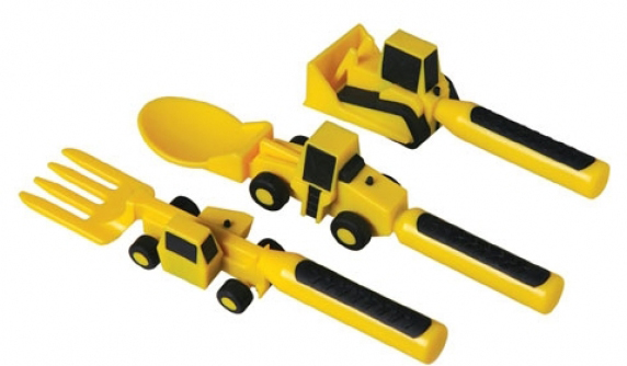 Amerikalı bir aile de oğullarının inşaat makinalarına olan hayranlığından yola çıkarak forklift çatal, yükleyici kaşık, buldozer itici’den oluşan bir yemek seti tasarlamış. Bu sete son olarak bir de inşaat alanı şeklinde bir tabak da eklemiş… Eğlenceli gözüküyor…